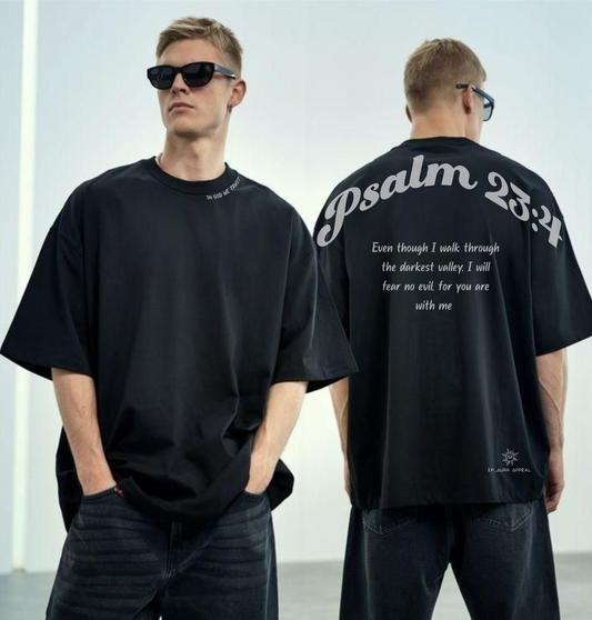 Psalm 23:4 Oversized Faith Tee – "Even Though I Walk Through the Valley"